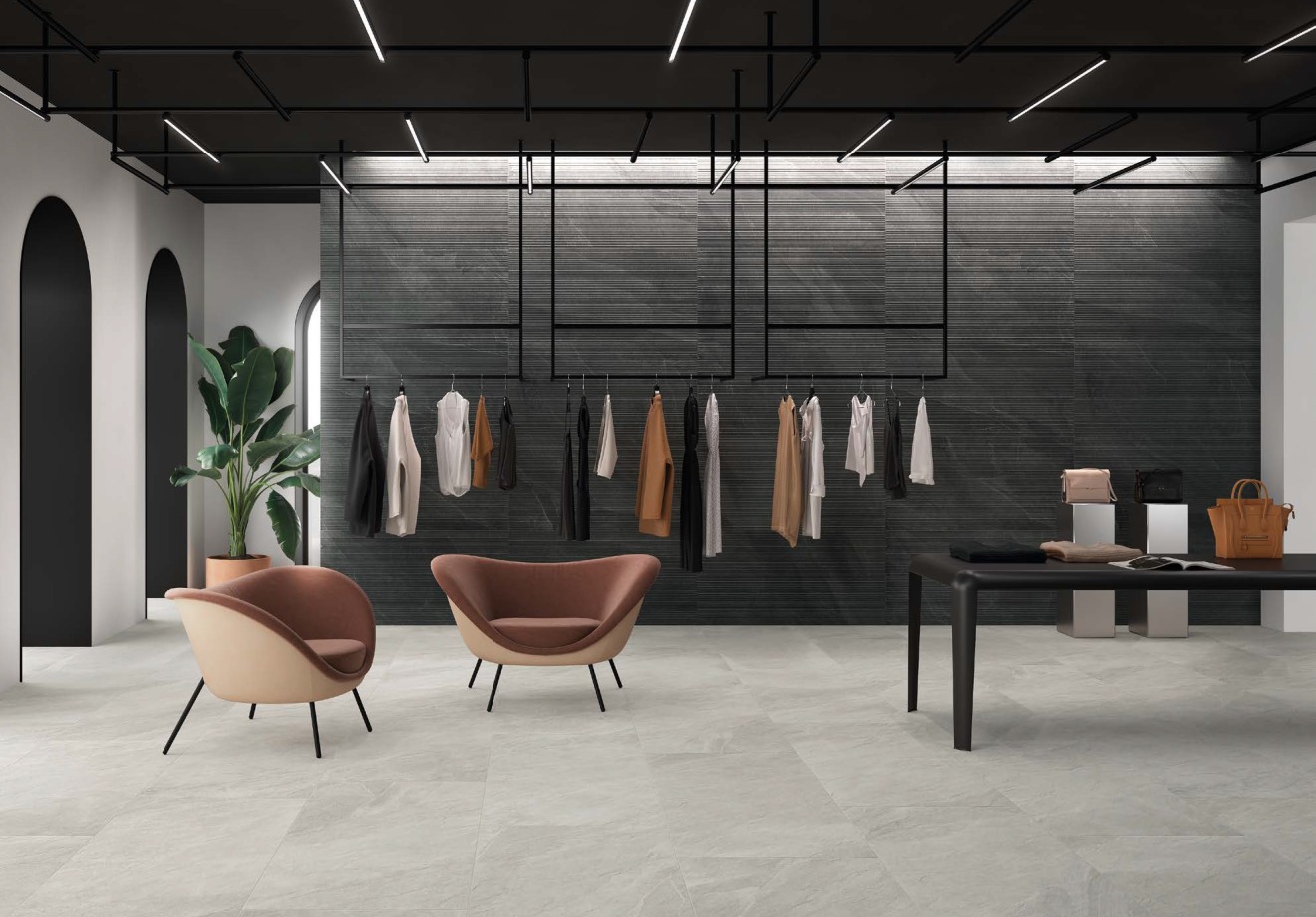 „Shale“ atsisako dirbtinių sprendimų ir atspindi gilių kūrybinių tyrimų rezultatą, harmoningai sujungiantį vidaus ir lauko paviršius. Kolekcijos grafiškas dinamiškumas, tiksliai kontroliuojama spalvinė paletė ir išstudijuoti metamorfiniai bruožai atsiskleidžia paviršiuje, kuris yra subalansuotas ir, svarbiausia, autentiškas.