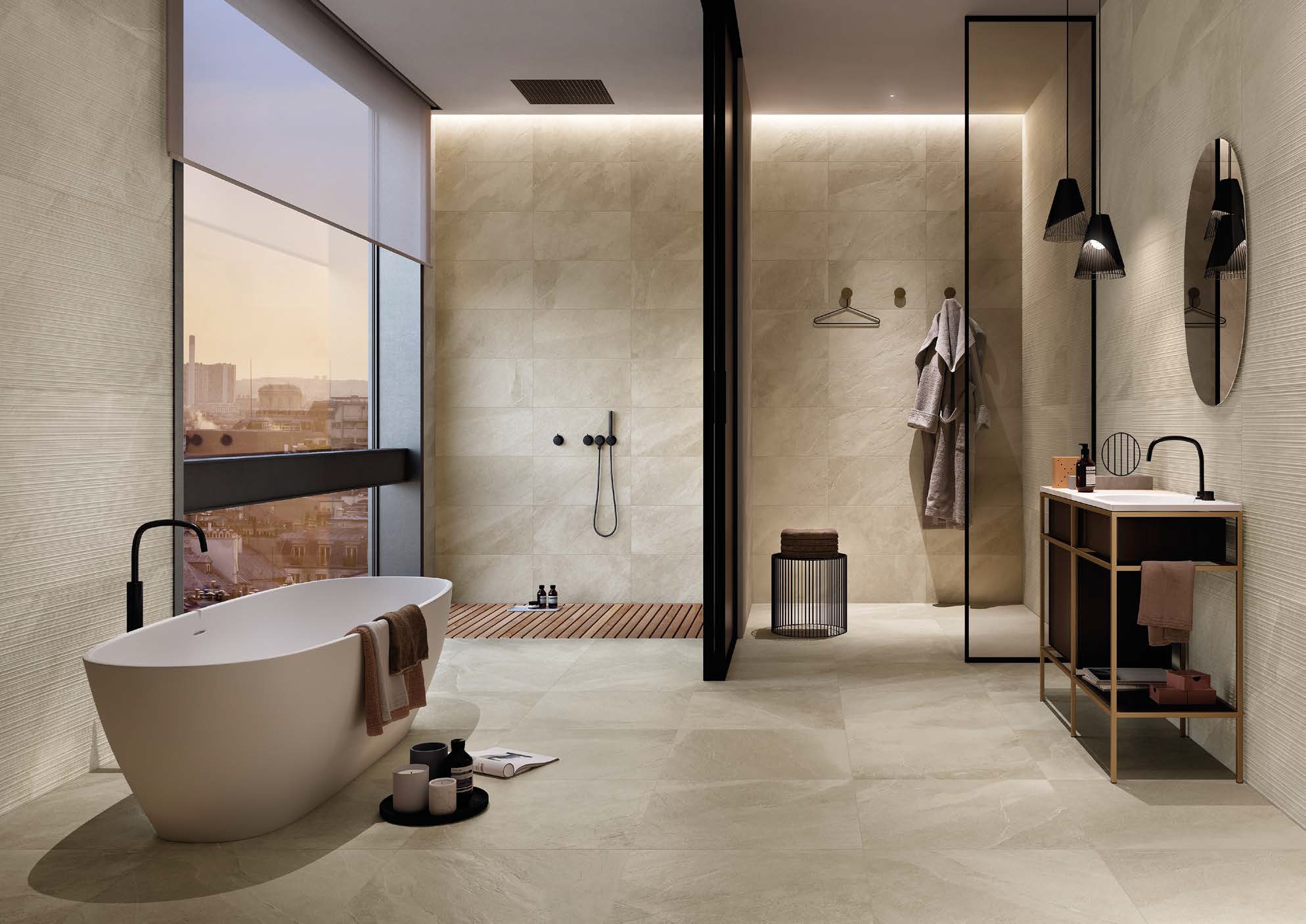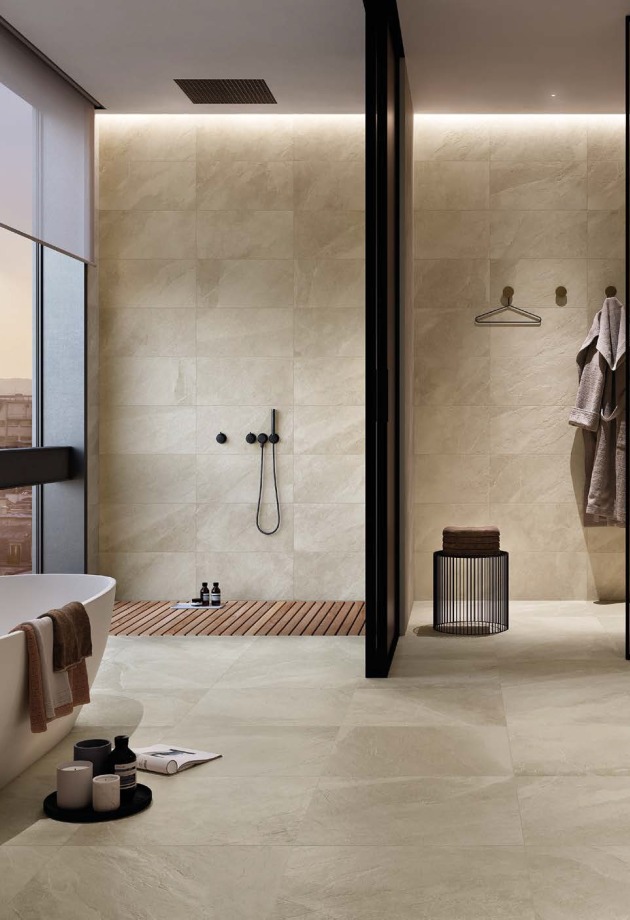 ITALGRANITI kolekcija SHALE siūlo akmens masės plyteles subtiliu, skelto akmens paviršiumi, būdingu skalūnui. Šios plytelės pasižymi grafine dinamika ir autentišku, puikiai subalansuotu margumu. Nepaisant grubokos skelto akmens išvaizdos, paviršius pasižymi ypatingu švelnumu ir puikiai tinkamas tiek privačios, tiek visuomeninės paskirties projektams.