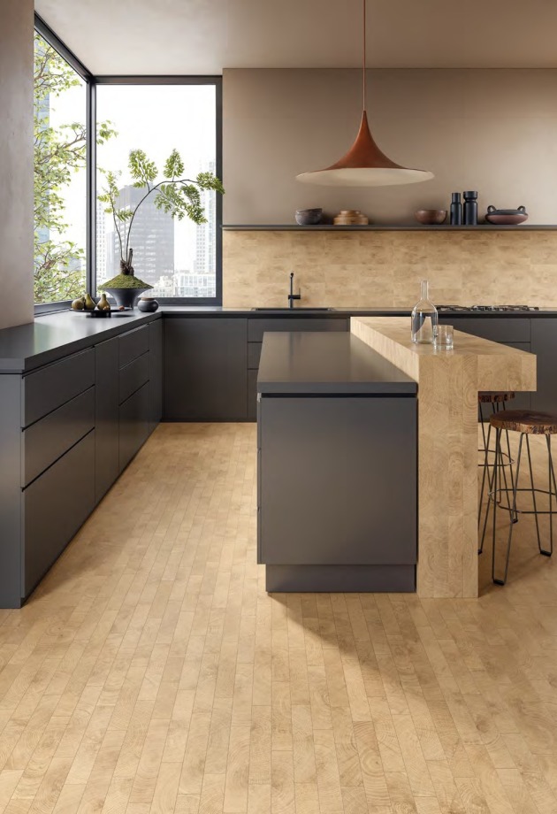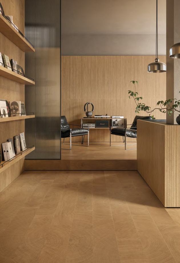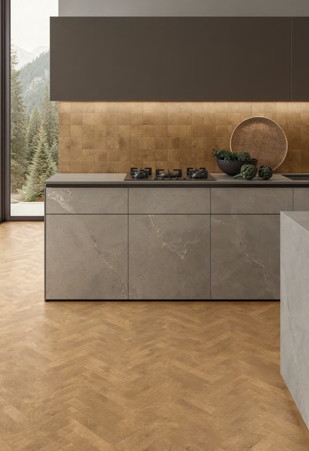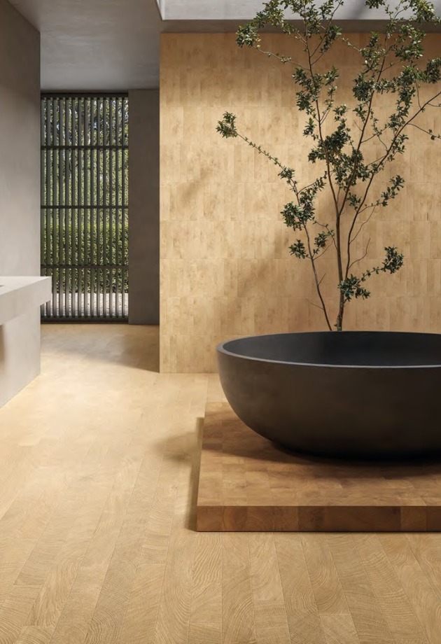 Rezultatas – medžiaga, kurioje metų laikų cikliškumas tampa stiliaus detale, paverčiančia kiekvieną erdvę pagarba laikui ir gamtos grožiui. Kolekciją papildo Mosaico 5×5 ir Mosaico 3D Cube – trimačio medžio rašto plytelės, suteikiančios erdvėms dar daugiau dinamikos.