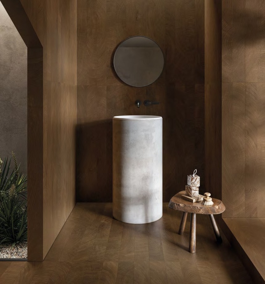 Gamintojo PROVENZA plytelių kolekcija „W-Circles“ nėra vien tik bandymas atkurti medienos struktūrą – ji tyrinėja platesnę jos rievių temą: amžino augimo simbolius, atminties ir prasmės labirintus.