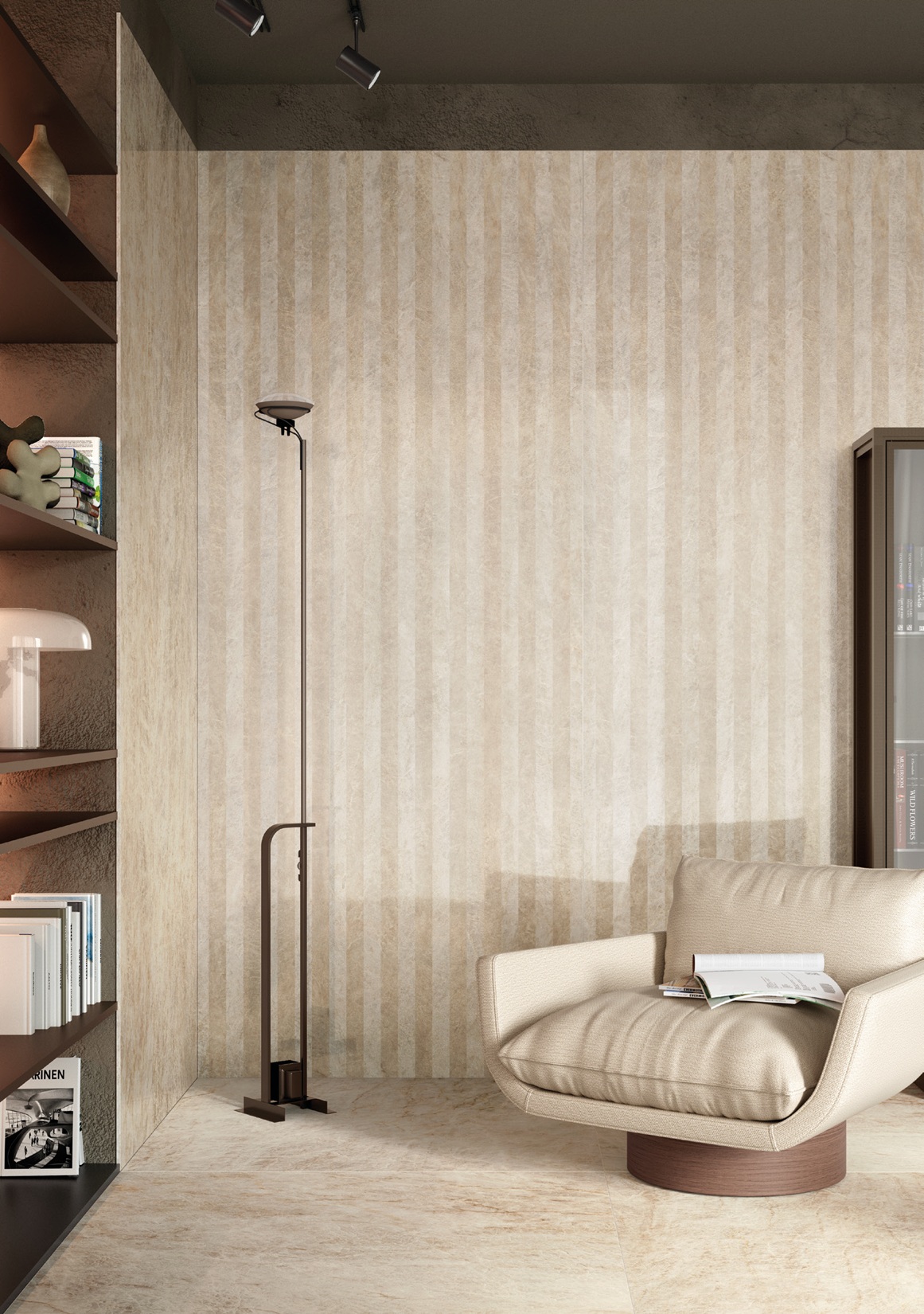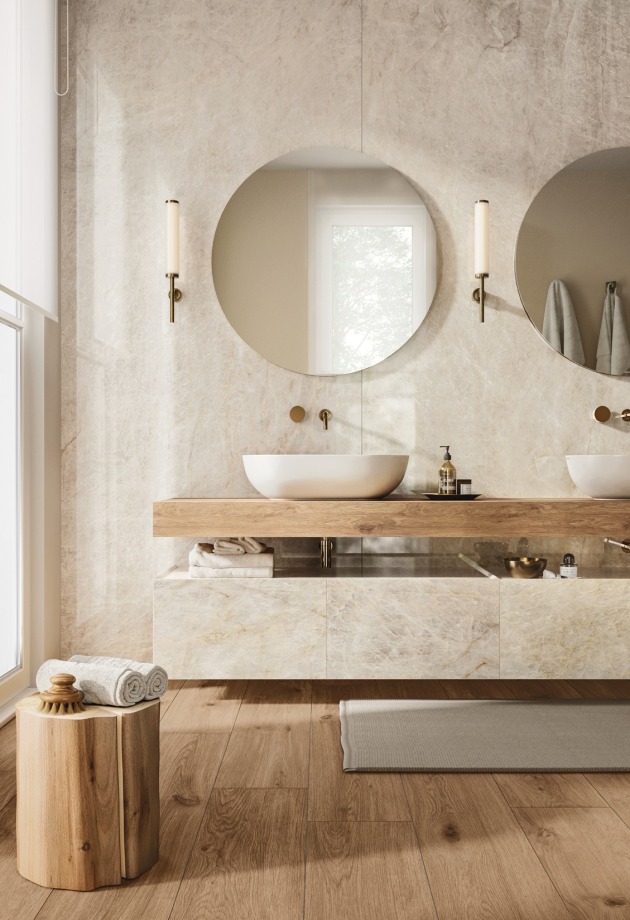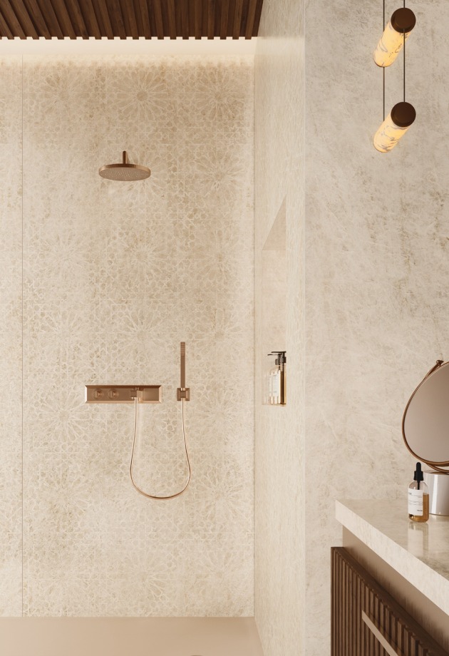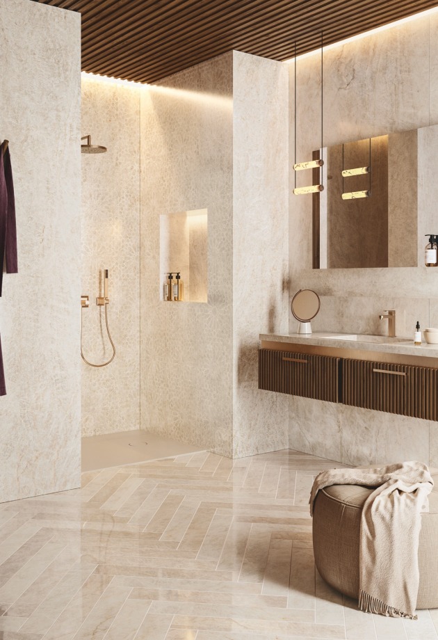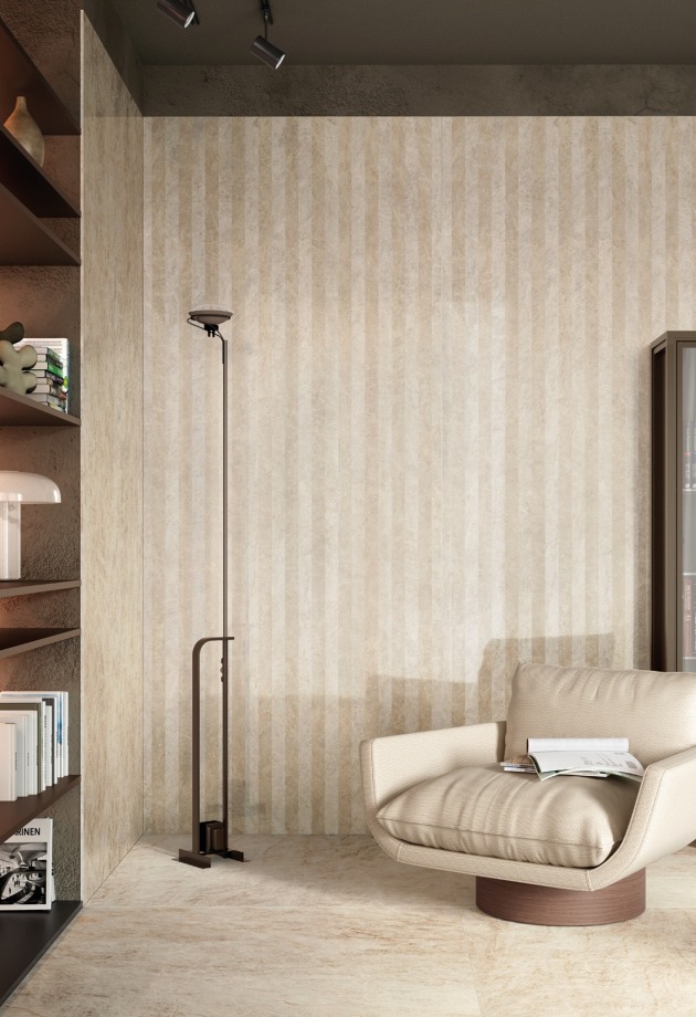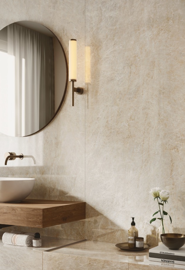 Įkvėpta marmuro rafinuotumo, ši akmens masės plytelių kolekcija sujungia grafinį lengvumą su išraiškinga jėga. Dramblio kaulo atspalviai ir subtilios gyslos sąveikauja su šviesa ir architektūra, kurdami subalansuotas, šiuolaikiškas erdves.