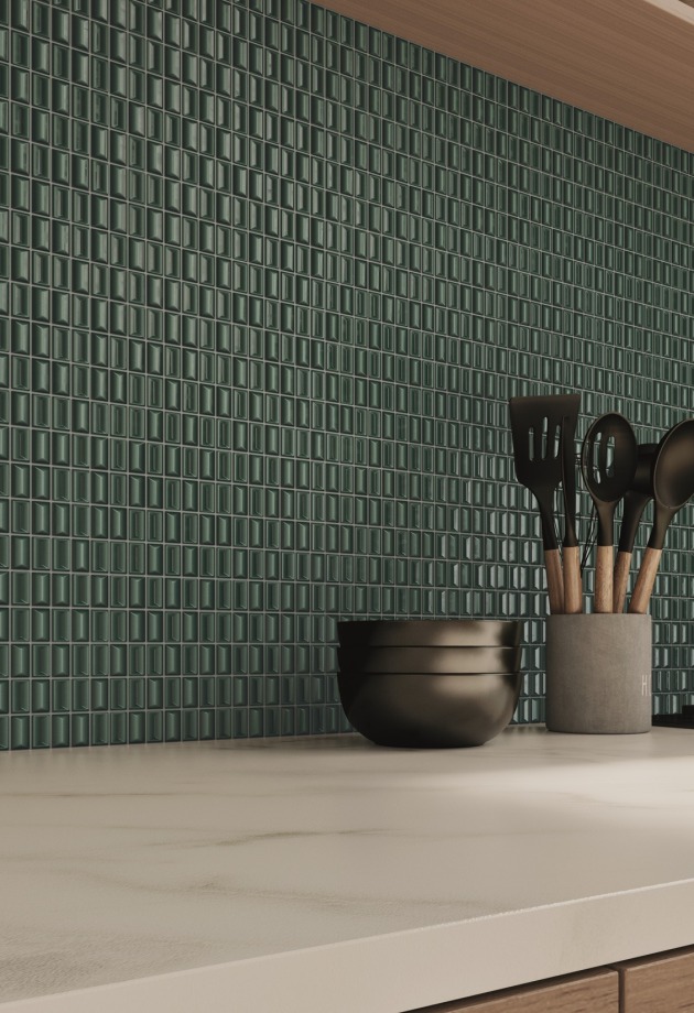 Šios 3D dekoratyvinės plytelės vizualiai atkartoja keraminę mozaiką, bet montuojamos didesniais gabalais, tad greičiau sudedamos.