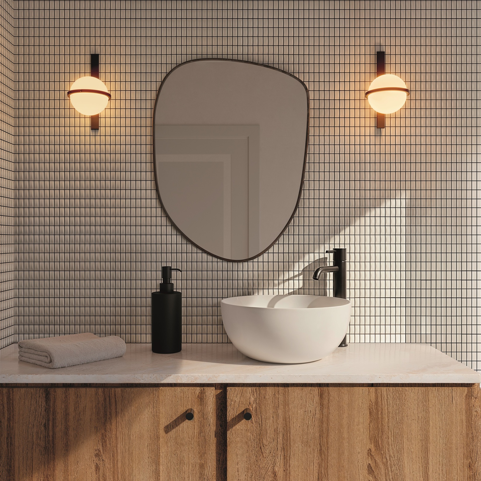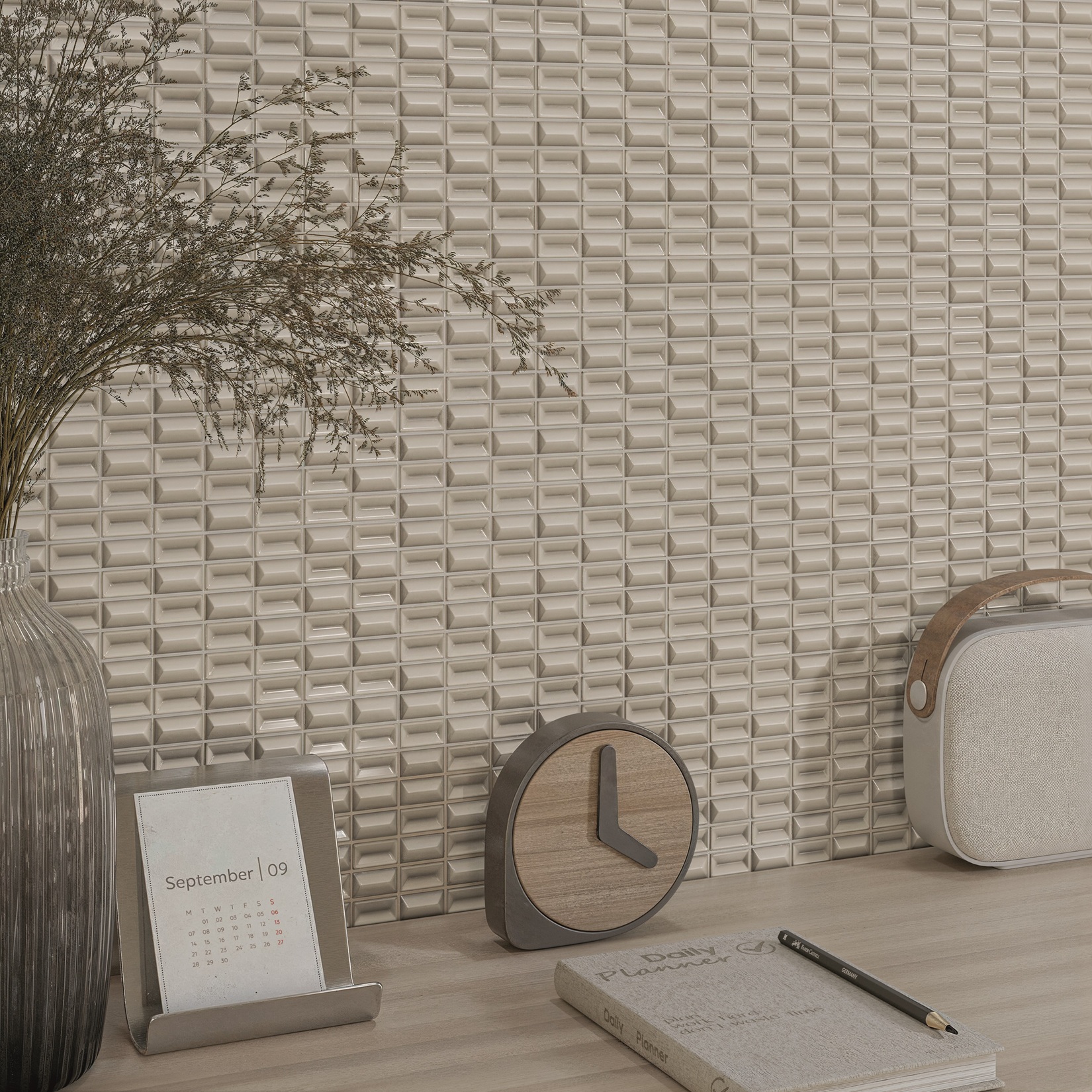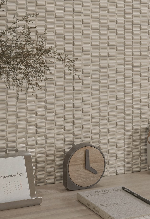 Kolekcija 3D BARS jungia smulkaus mastelio geometriją su paviršiais, kurie kinta priklausomai nuo šviesos ir šešėlio. Kiekviena plytelė sudaryta iš mažų 3D gabalėlių, galinčių transformuoti bet kurią erdvę blizgiais ir matiniais paviršiais.