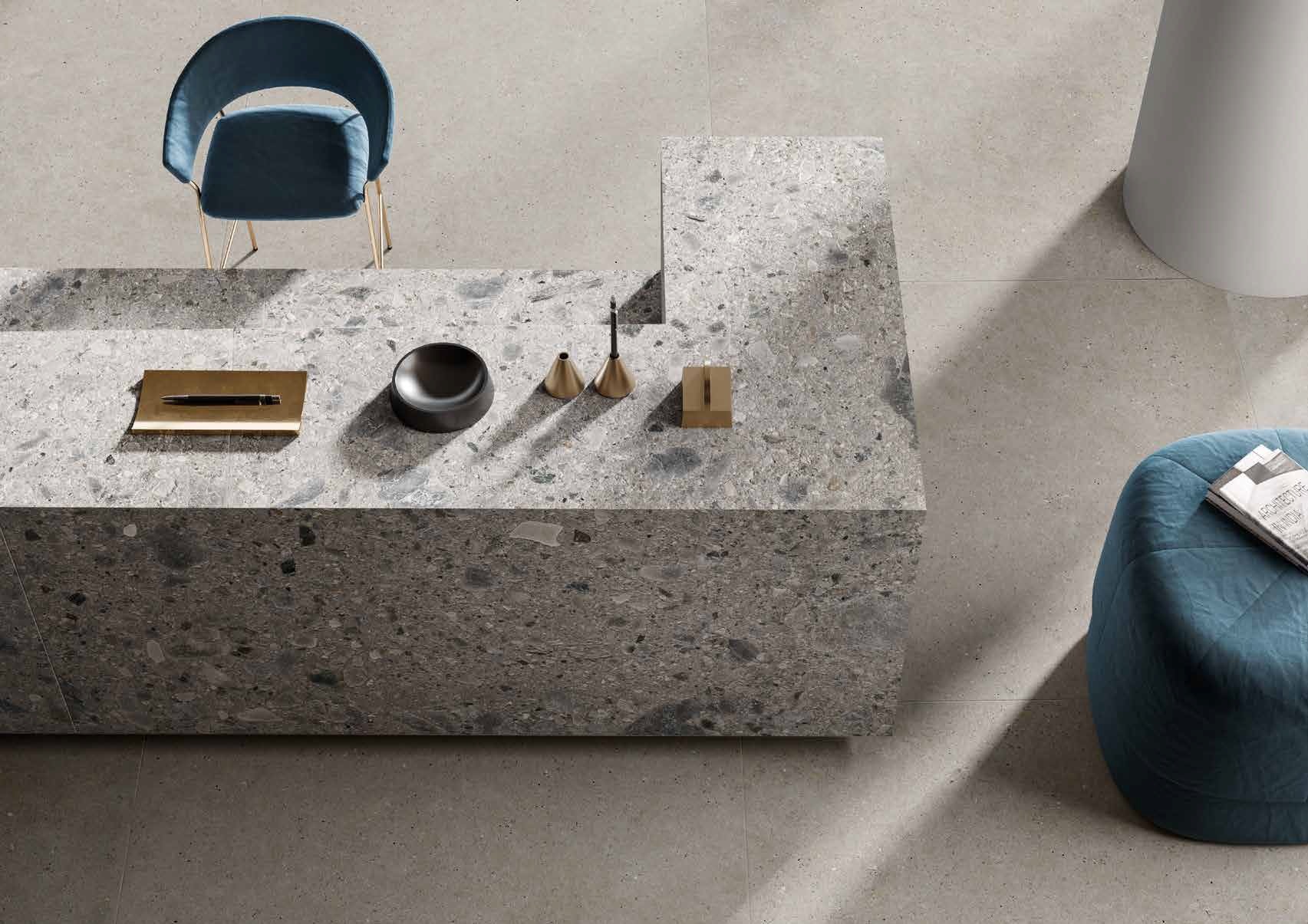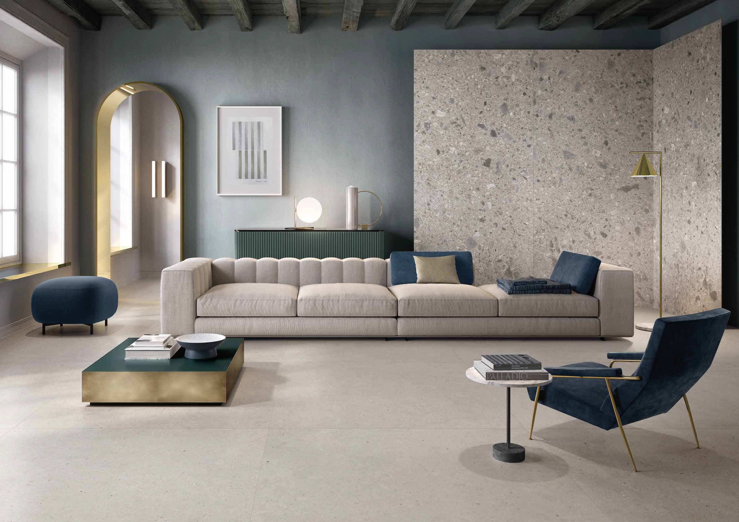 Moderni prabanga gali būti tyli, bet priblokšti nuo pat pirmo žvilgsnio. Dekoratyvinės Ceppo di Gre Grey akmens masės plytelės idealiai atitinka realų akmenį, dėl ko atrodo nepaprastai prabangiai, tačiau tuo pat metu ir jaukiai. Šio modelio gaminiai dažnai pasirenkami tiek šildomoms grindims, tiek sienoms dekoruoti ar įprastoms grindims net ir lauko zonose (dėl atsparumo).