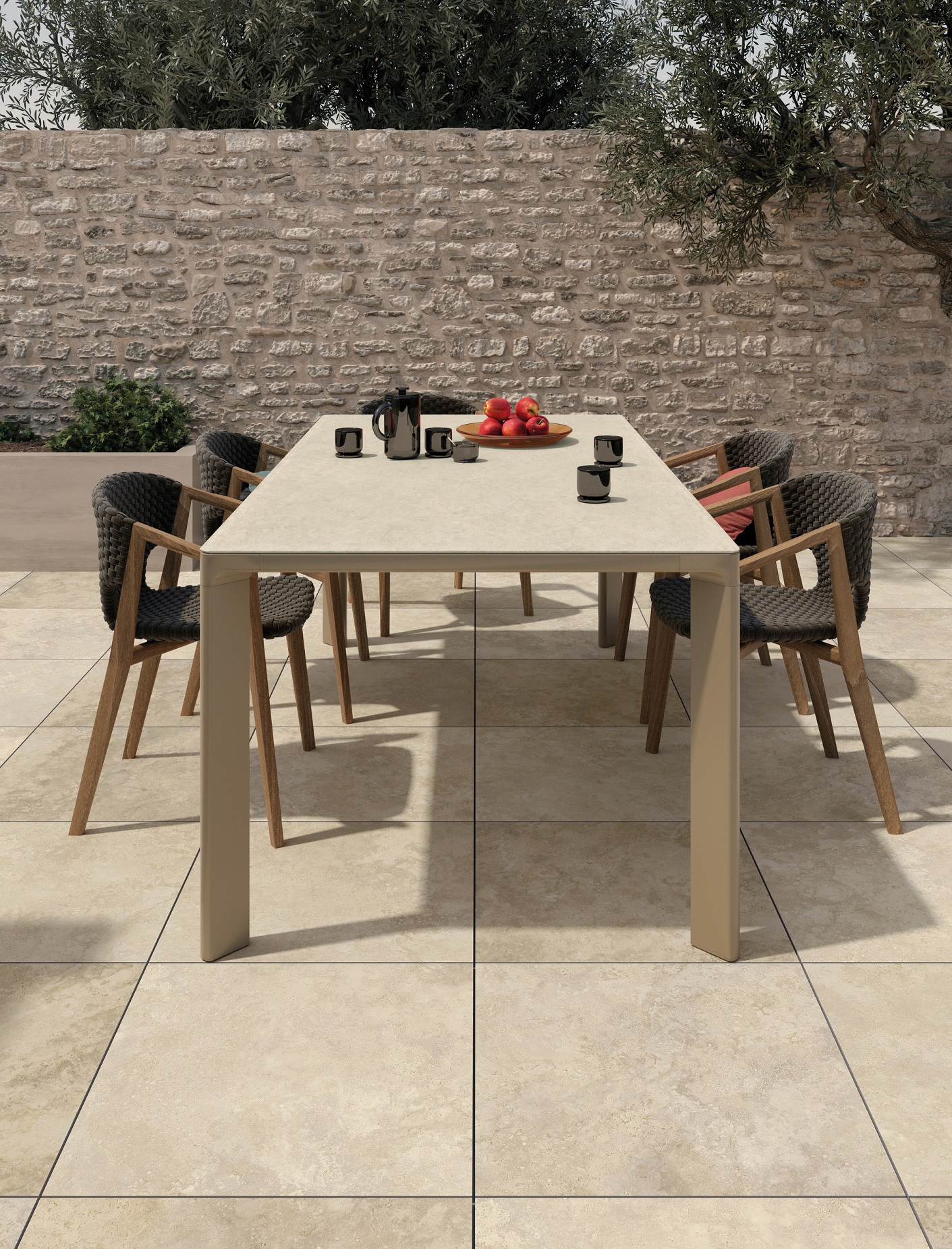 Šioms plytelėms nereikalingas impregnavimas, jos lengvai prižiūrimos nesirenkant specialių priemonių ar kitų metodų. Šios akmens masės lauko plytelės neslidžios (R11 šiurkštumo klasės), patvarios drėgmei ir ledui, taip pat šių plytelių techniniai parametrai yra daug aukštesni nei kitų.
