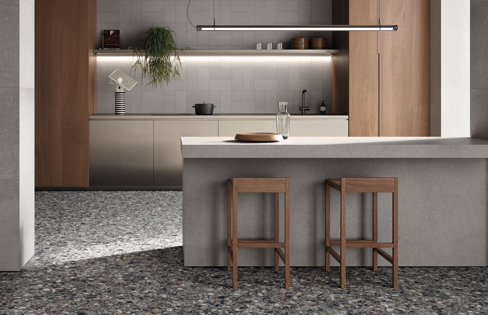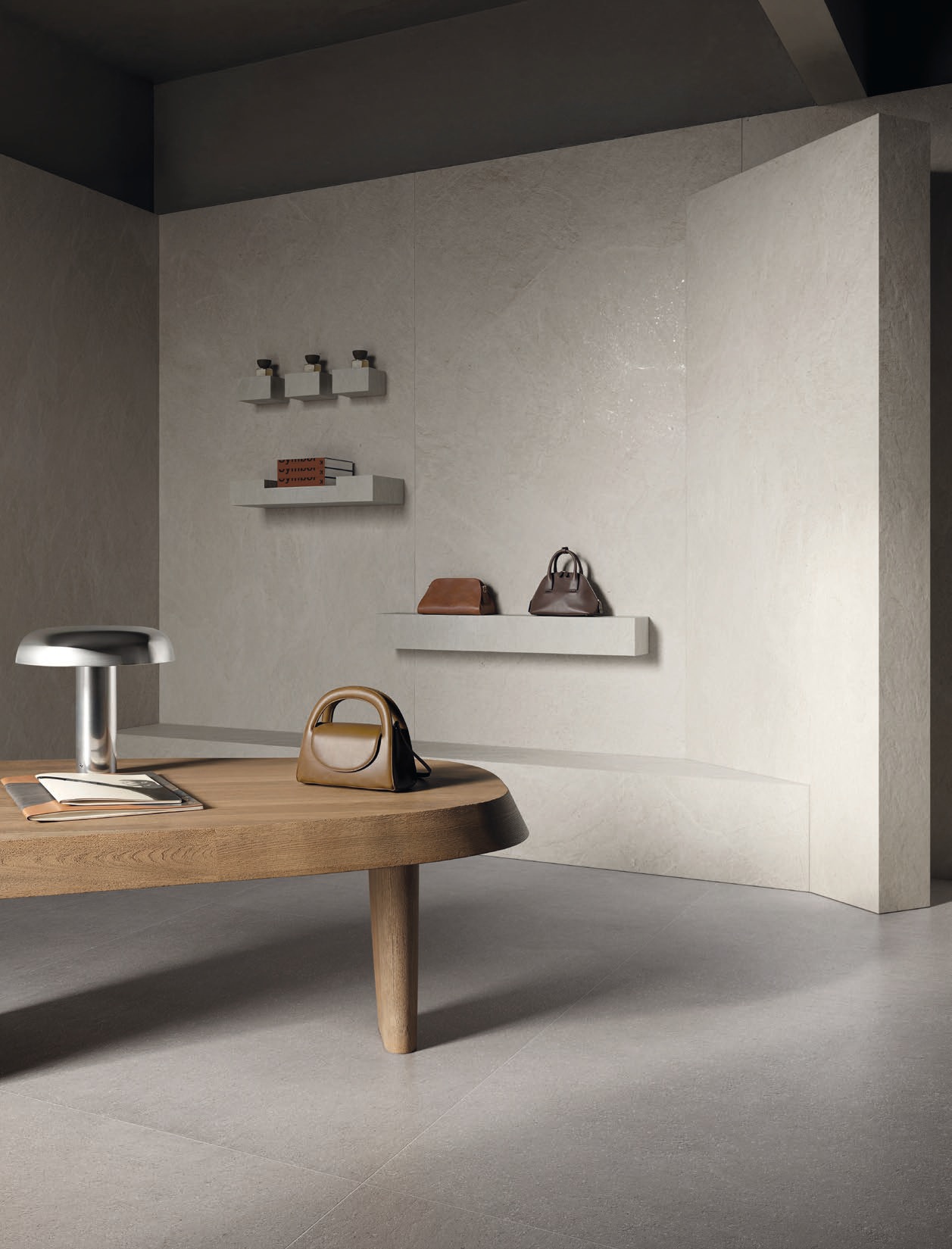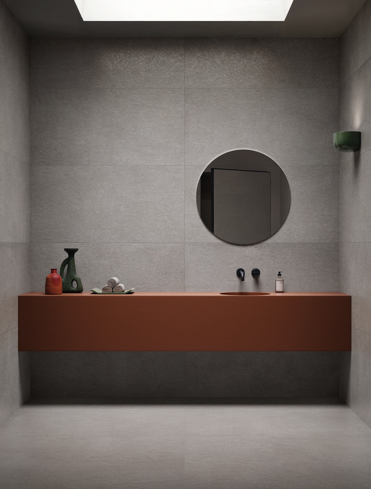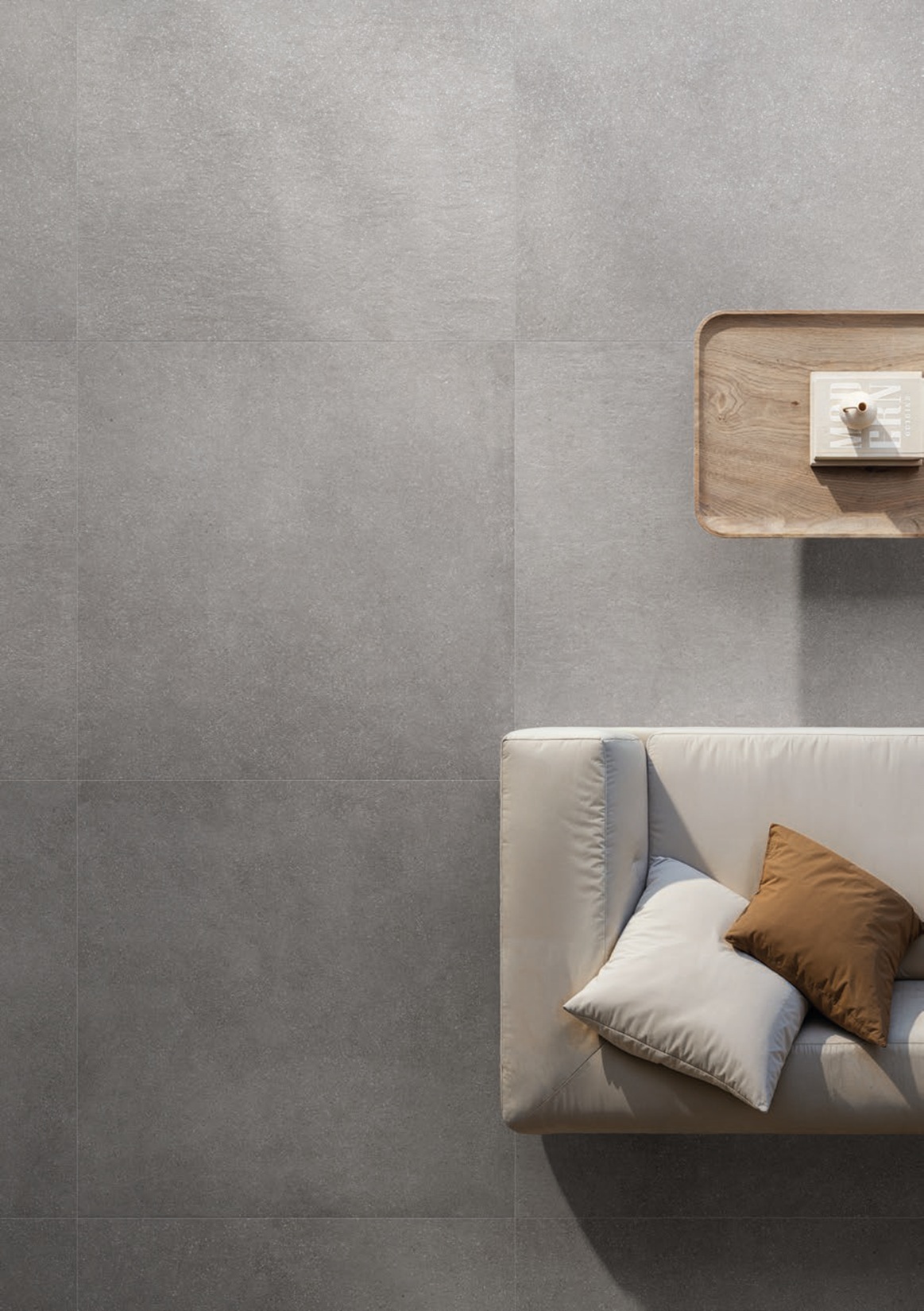 Cohesa Antracite – tamsiai pilkos (antracito) spalvos akmens masės plytelės su subtilia betono imitacija. Paviršius pasižymi lengva tekstūra ir mikro intarpais, kurie sukuria natūralų, gyvą vaizdą, išlaikant minimalistinį ir modernų stilių.