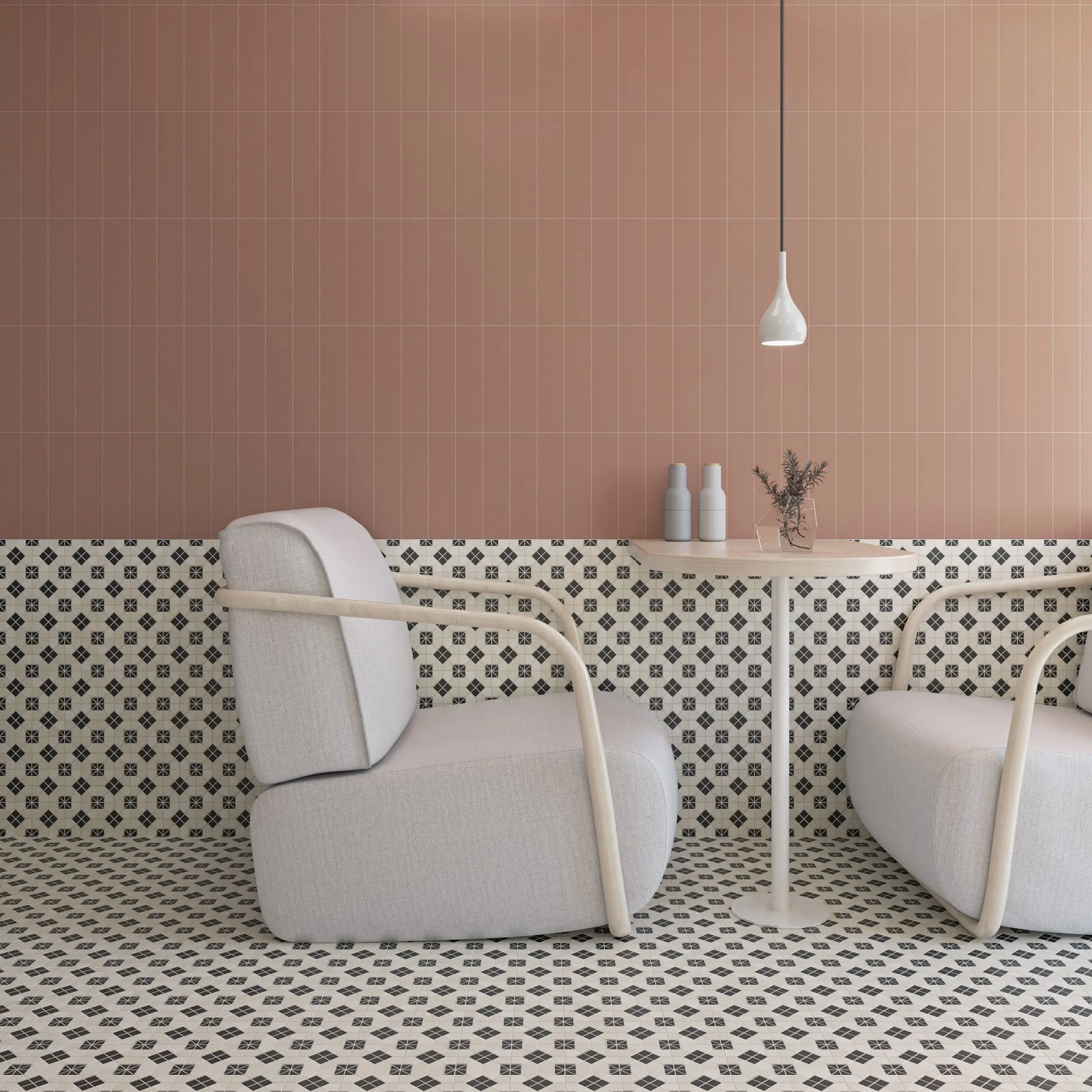 Šiuo metu galite rinktis 28x28 cm Suit B&W plyteles, kurios sukurs labai akį traukiantį, bet tuo pačiu ir harmoningą vaizdą. Šios akmens masės plytelės puikiai tinka ir grindims, ir sienoms, kai norisi interjerui pridėti klasės, vintažinio, tiek Art Deco, tiek ankstesnių ar kiek vėlesnių epochų klasikai būdingo šarmo. Jos dažnai pasirenkamos voniai ar holams bei, kaip dekoratyvinis elementas, nors atsparumo dėka tinka lauko zonoms, pavyzdžiui, terasai.