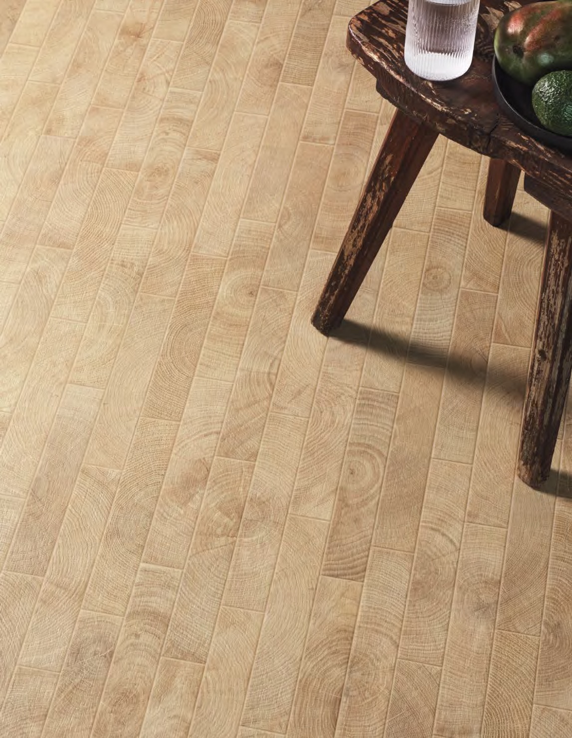 Kodėl gi ne medžio imitacijos akmens masės plytelės? Visi žinome, kad parketlentės namuose ar patalpose sukuria jaukumą, kuris sunkiai atkartojamas. Tačiau dekoratyvinės W-Circles kolekcijos plytelės pasiūlo tą pačią estetiką ir žymiai daugiau privalumų, nes valymas ir priežiūra – daug paprastesni.