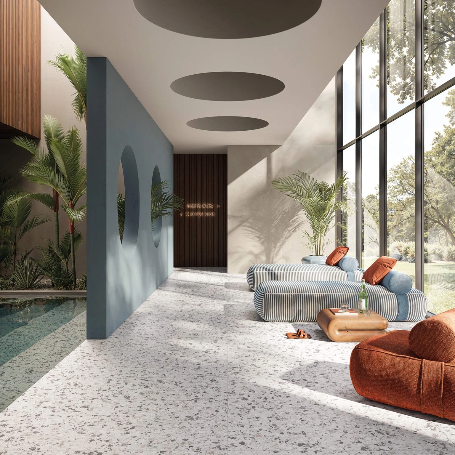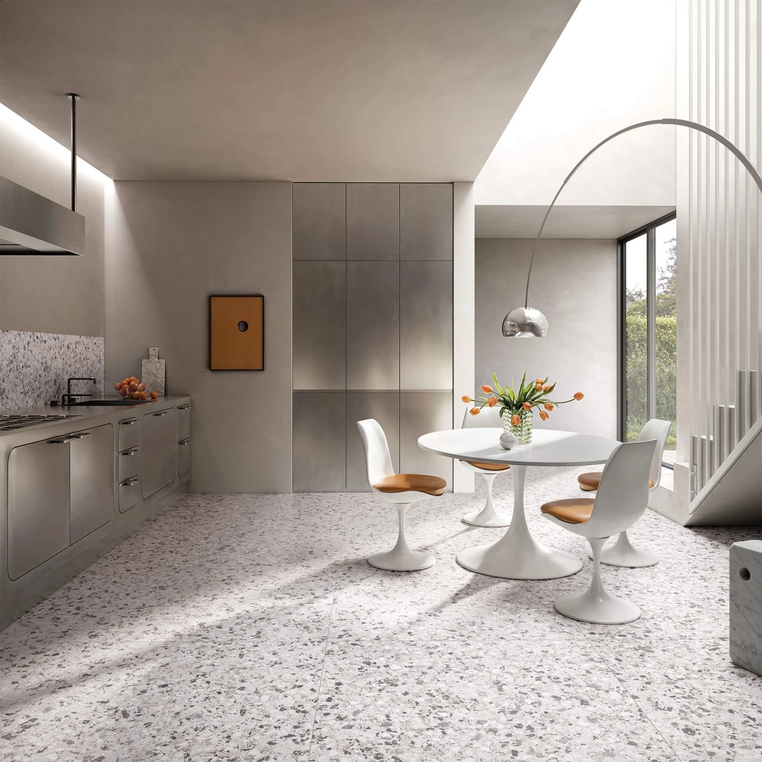 Neoclassica Aulite - šviesus, natūralaus akmens tono teraco atspalvis, suteikiantis interjerui šilumos ir elegantiško lengvumo.
