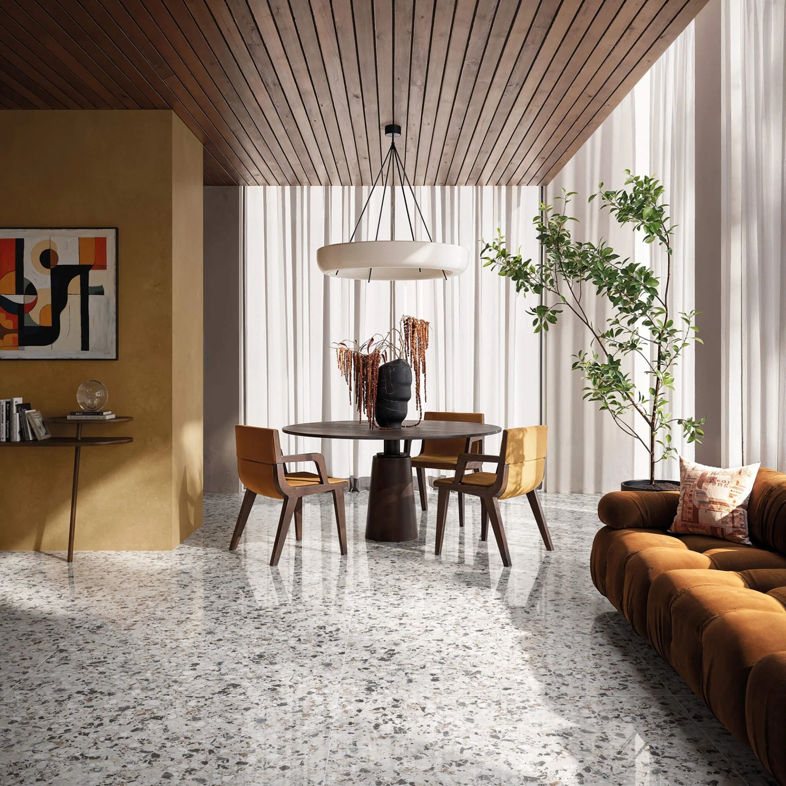 Neoclassica Lunaria - švelnaus pilko tono teraco atspalvis, kuriantis modernų, švarų ir elegantišką interjero foną.