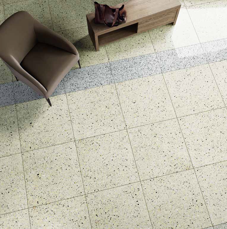 Rialto Green plytelės – terrazzo stiliaus akmens masės plytelės, išsiskiriančios žaismingomis spalvomis bei dizainais. Marmuro efekto intarpai plytelių paviršiuje atrodo itin gražiai ir pasirinktoms sienoms bei grindims suteikia daugiau jaukumo. Kadangi Rialto Green plytelės pasižymi margu, neporėtu paviršiumi, jų valymas bei priežiūra yra itin lengva. Būtent dėl šios priežasties jos idealiai tinka ne tik gyvenamosiose erdvėse, bet ir komercinėse patalpose: kavinėse, restoranuose, parduotuvėse ar net ofisuose, kur intensyvus žmonių judėjimas.