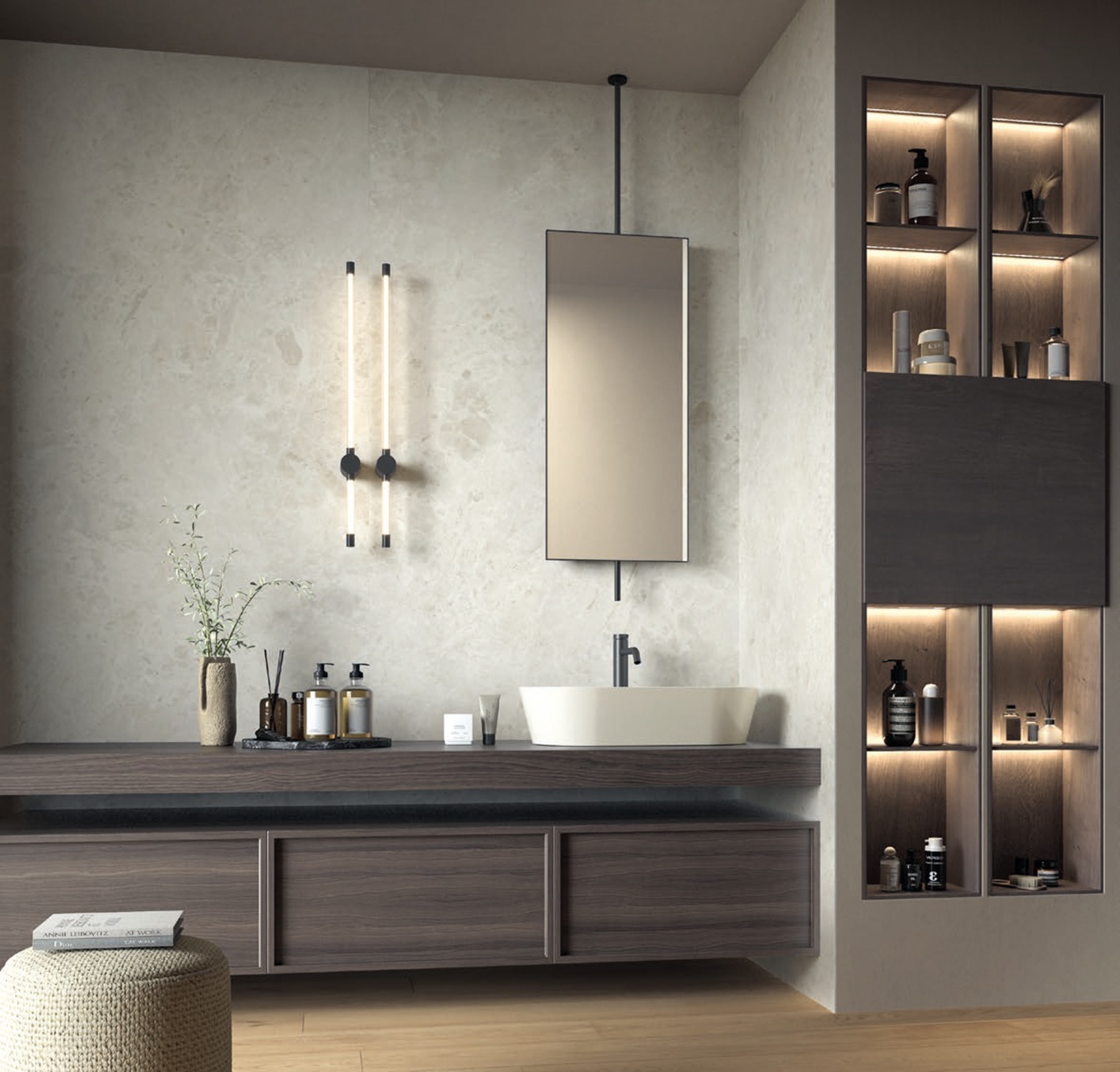 Spalva White – šviesus ir elegantiškas brečija akmens atspalvis, kuriame dominuoja švelnūs balti ir šiltai pilkšvi tonai, subtiliai persipinantys su natūraliomis akmens gyslomis. Šis paviršius suteikia erdvei švaros, šviesos ir vizualinio lengvumo pojūtį, kartu išlaikydamas natūralaus akmens charakterį.